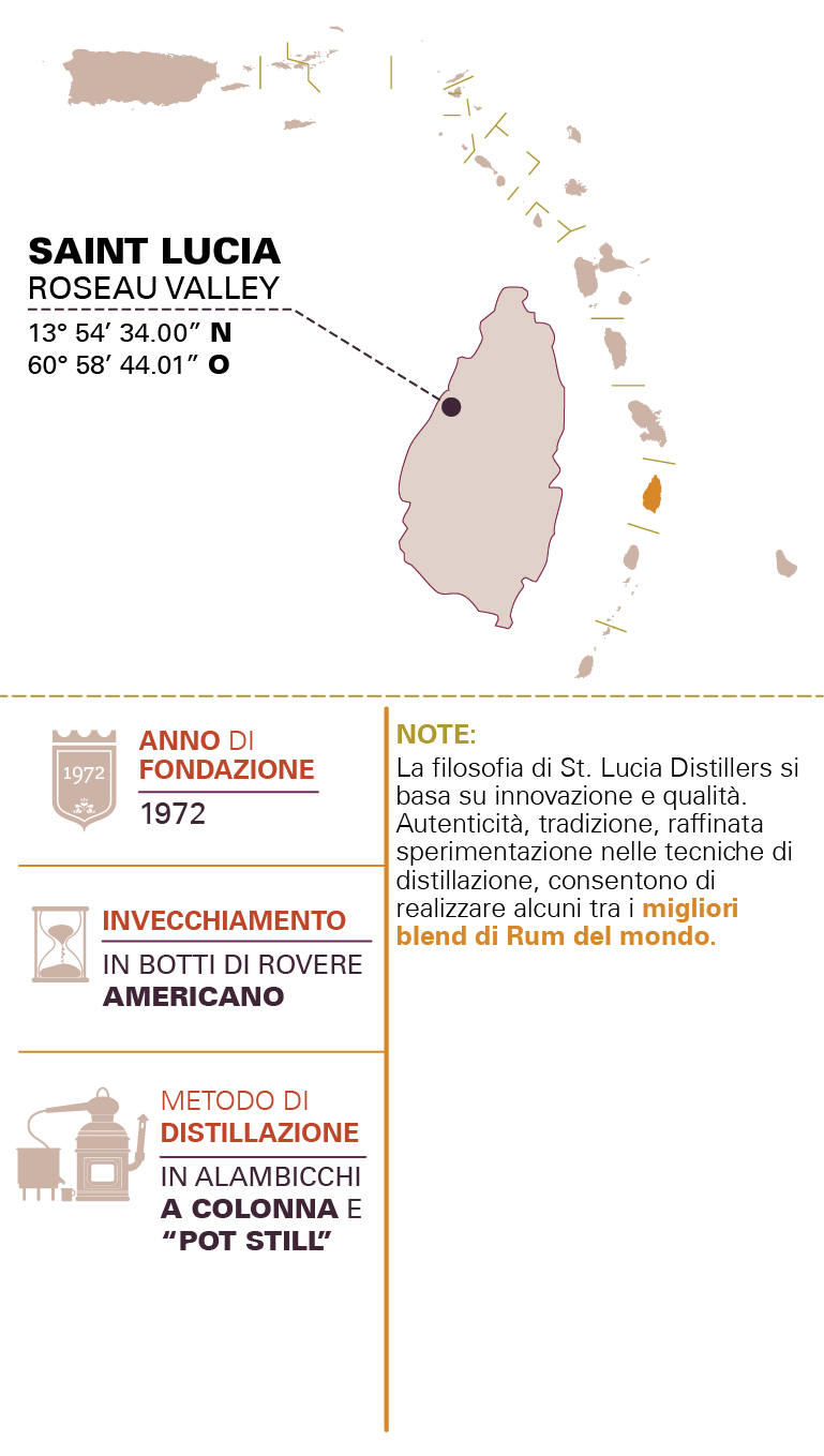 ZONA PRODUTTIVARoseau Valley - St. Lucia MATERIA PRIMAMelassa e canna da zucchero. DISTILLAZIONELegacy è un blend di rum provenienti dagli alambicchi John Dore, Vendome e Coffey. Ai rum tradizionali a base di melassa la miscela viene rinfrescata e bilanciata dall'aggiunta di rum di canna da zucchero di proprietà. Questo rum è fermentato con l’utilizzo di lieviti selvatici e viene distillato nell'alambicco John Dore. Il risultato è l'incarnazione della visione che Laurie Barnard ha avuto per la distilleria St. Lucia. COLOREAmbra mogano chiaro, con sfumature giallo intenso. PROFUMOAromi dolci di uvetta e caramella al mou si fondono armoniosamente, con note di tabacco, vaniglia e banana lasciando poi spazio ad una delicata sfumatura erbacea, che ricorda la canna da zucchero. SAPOREIntenso e complesso di crème brûlée, uva sultanina, vaniglia con una nota calda di zenzero. Finale lungo e persistente. NOTELa filosofia di St Lucia Distillers si basa su innovazione e qualità. Autenticità tradizione raffinata sperimentazione nelle tecniche di distillazione consentono di realizzare alcuni tra i migliori blend di Rum del mondo. INVECCHIAMENTOIn botti di quercia bianca americana.