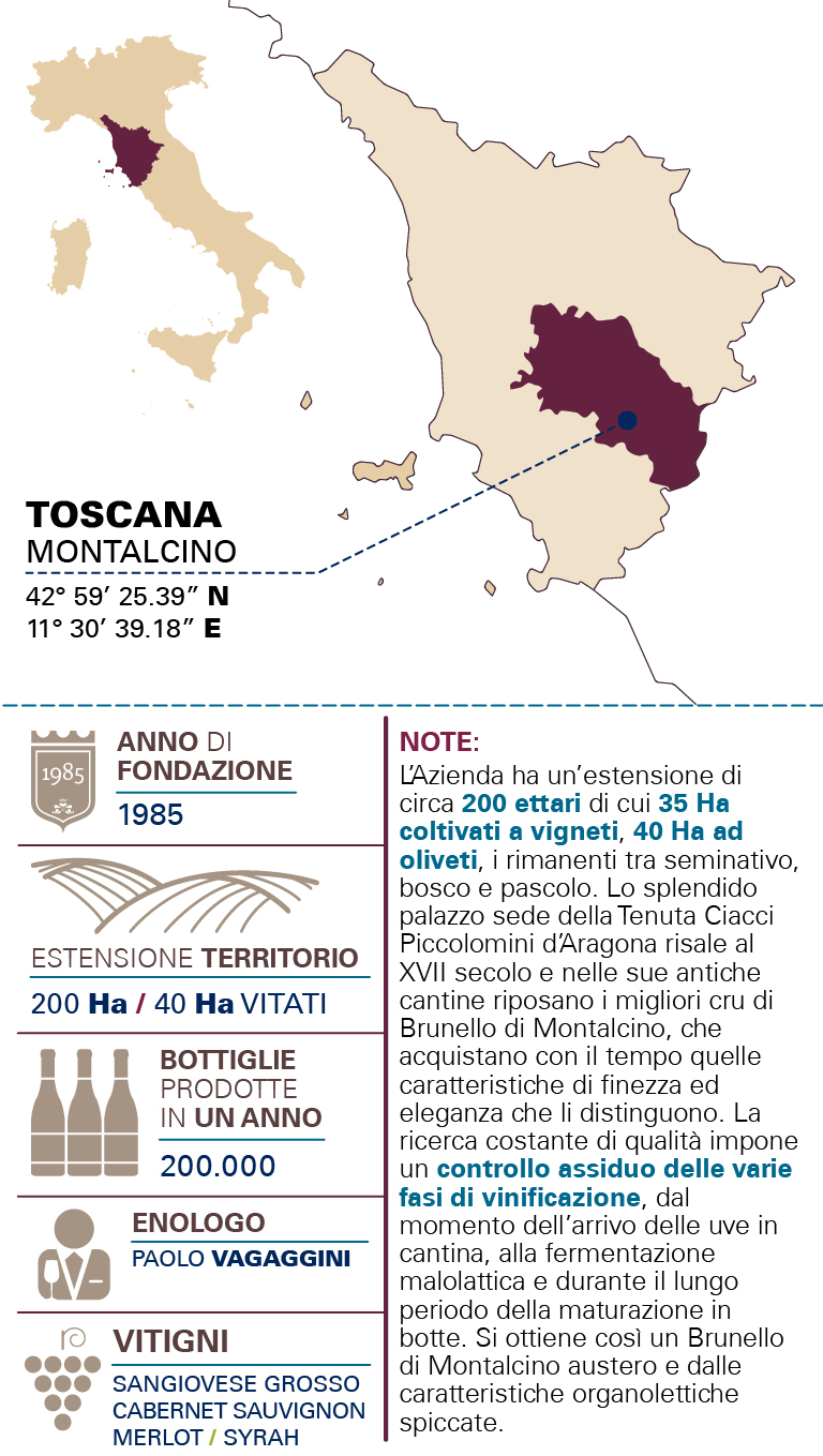 • ZONA PRODUTTIVANella zona di Montalcino, in una superficie di 40 ettari.